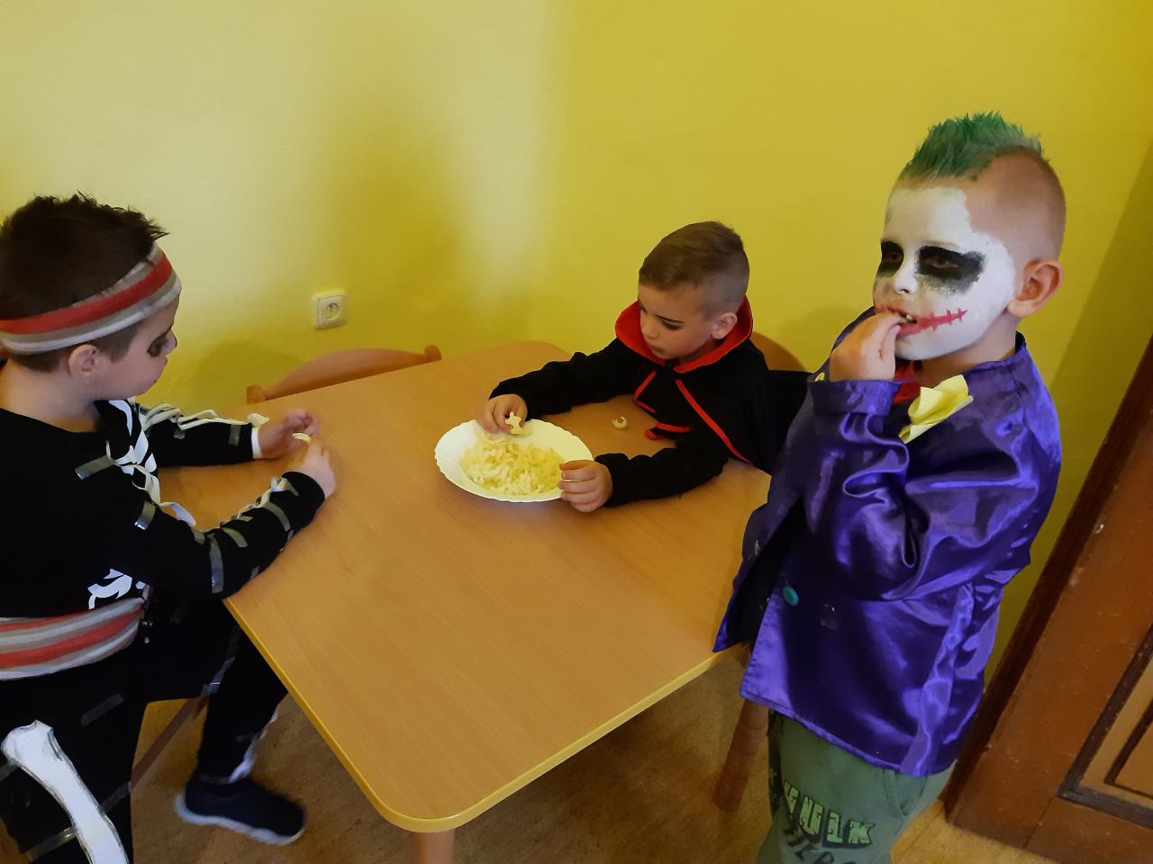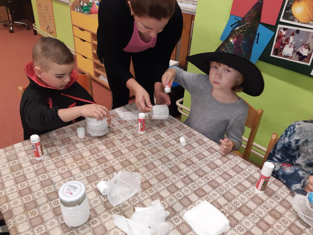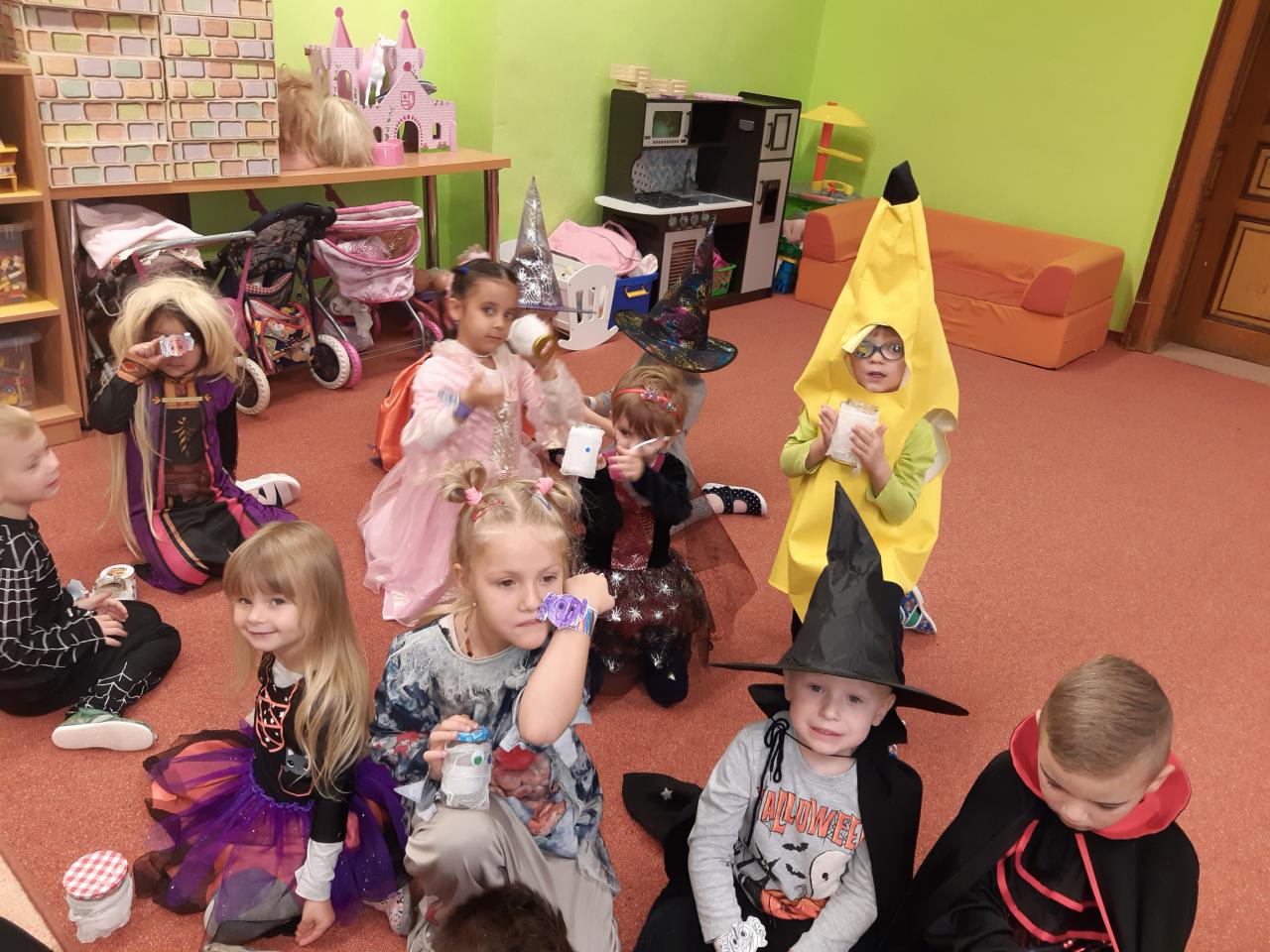 Děti se na tento den velice těšily, protože se mohly převléknout do strašidelných kostýmů. Společně si užily dopoledne plné soutěží a vyrábění lucerniček. Nechybělo ani tancování, do něhož děti daly opravdu všechno. Pro všechny čaroděje byla nakonec připravena hostina a také diplom:-)