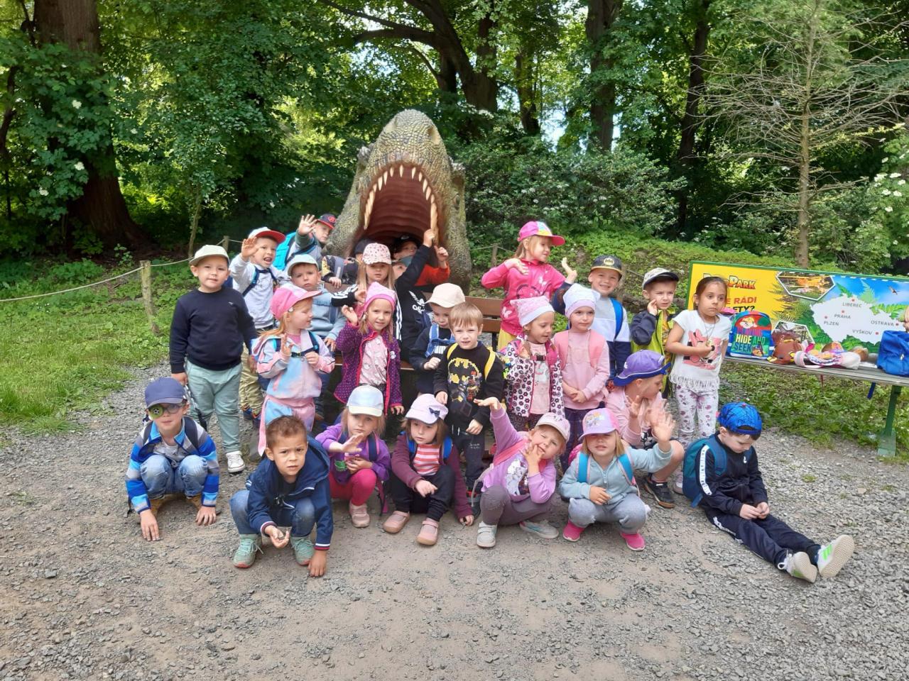 V úterý 13.6. se uskutečnil školní výlet do známého DinoParku ve Vyškově. Děti se svezly vláčkem, který nás vysadil přímo v DinoParku. Poté jsme si prošli celý areál DinoParku. Po cestě jsme potkali nespočetné množství dinosaurů. Děti si pohrály na pískovišti a shlédly film v 3D kině.