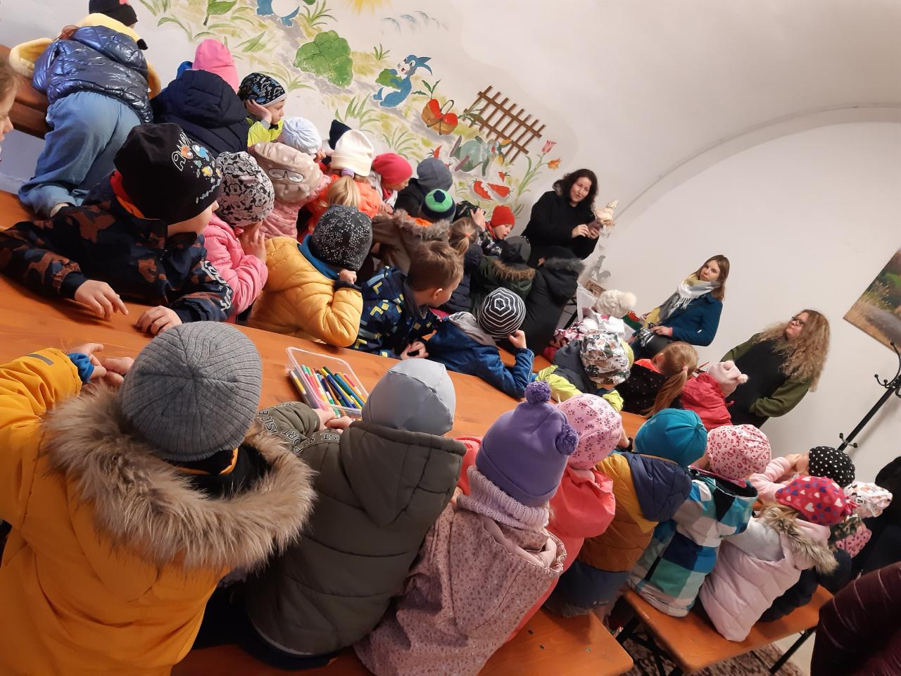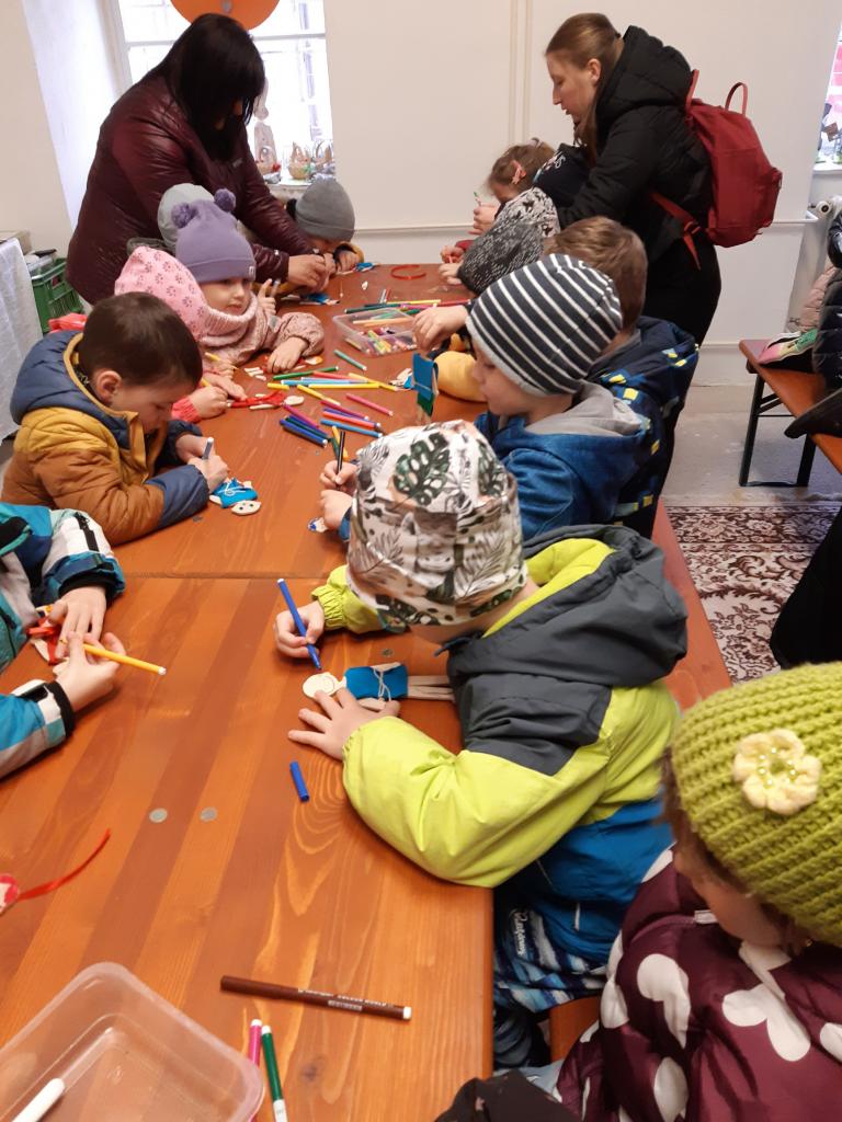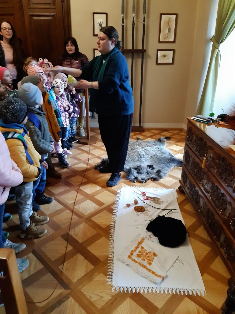 Děti se zúčastnily výukového programu na zámku v Čechách pod Kosířem, kde se seznámily s velikonočními tradicemi a zvyky. Ve tvořivé dílničce si vyrobily panenku nebo panáčka. V zámku si mohly prohlédnout velikonoční výzdobu, jak se dříve lidé připravovali na příchod jarních svátků.