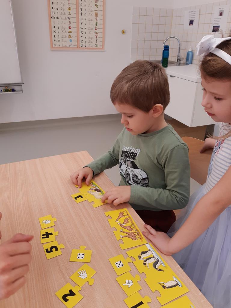 V úterý dne 4.4.2023 si naši předškoláci mohli vyzkoušet zápis ,,nanečisto" v základní škole. Kreslili, počítali, hráli pexeso a povídali pohádku. A že byli šikovní! Podívejte se sami :-)
