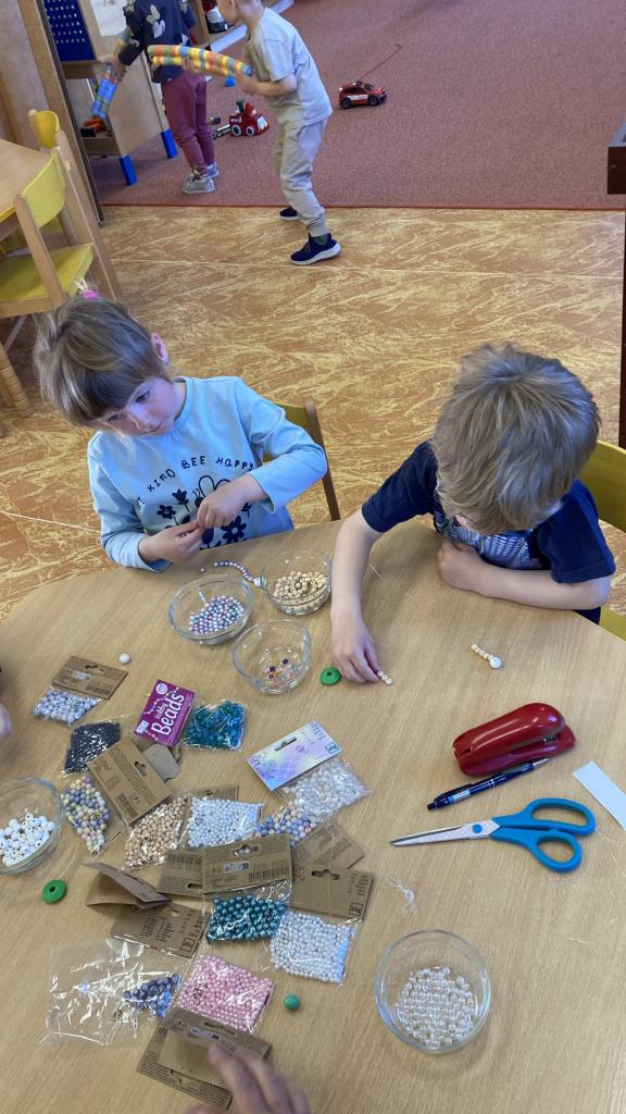 Sběr fotek při tvoření náramků pro maminky, radovánky na hřišti i ve třídě.