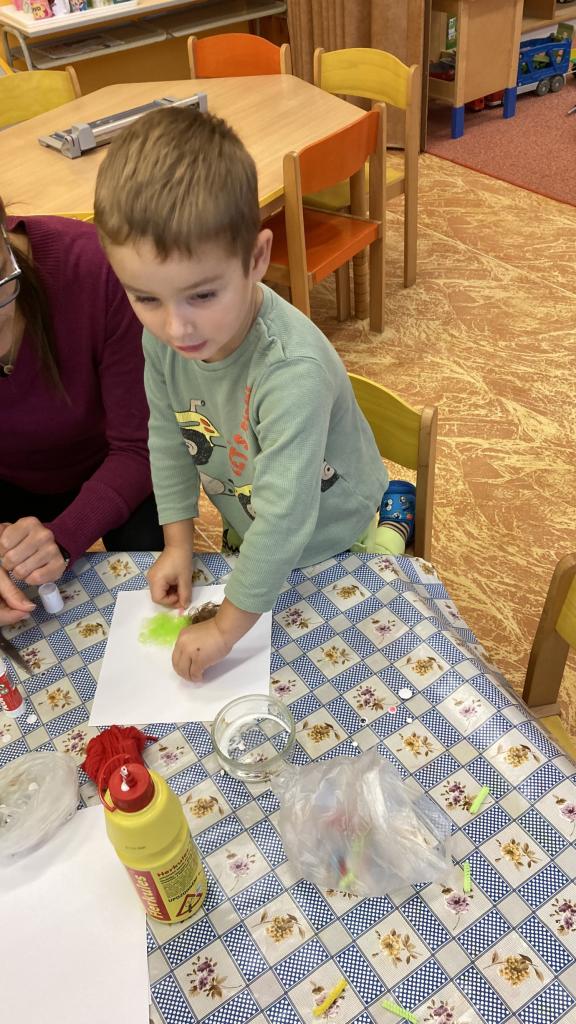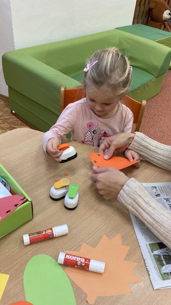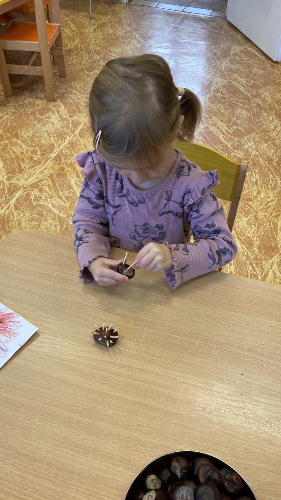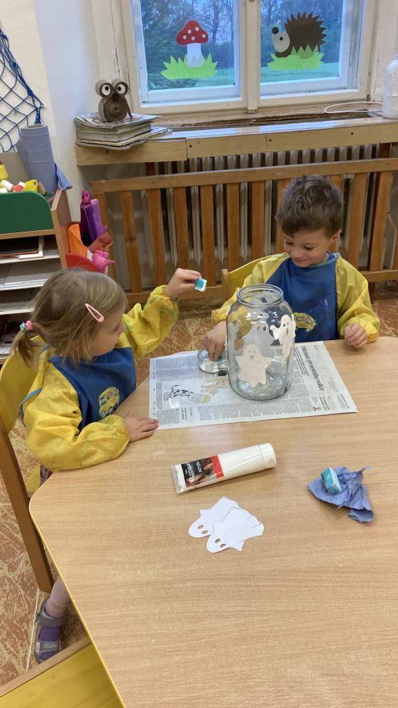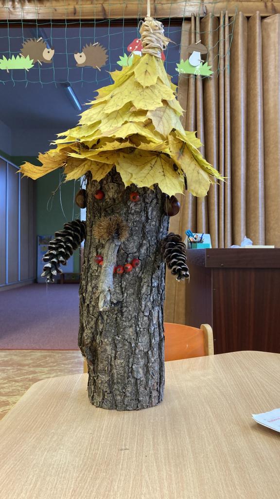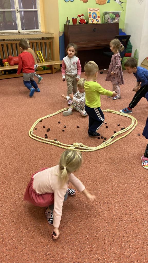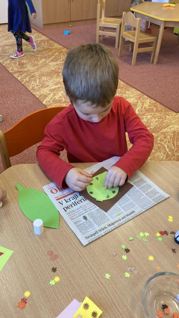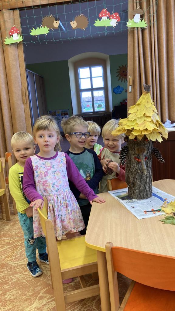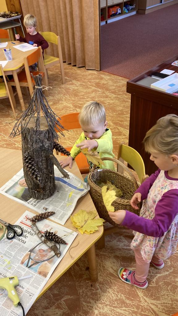 V tento čas děti pozorovaly změny v přírodě - padající listí, plody podzimu, ze kterých i vyráběly a výtvarně je zpracovávaly.