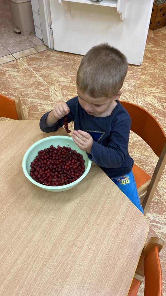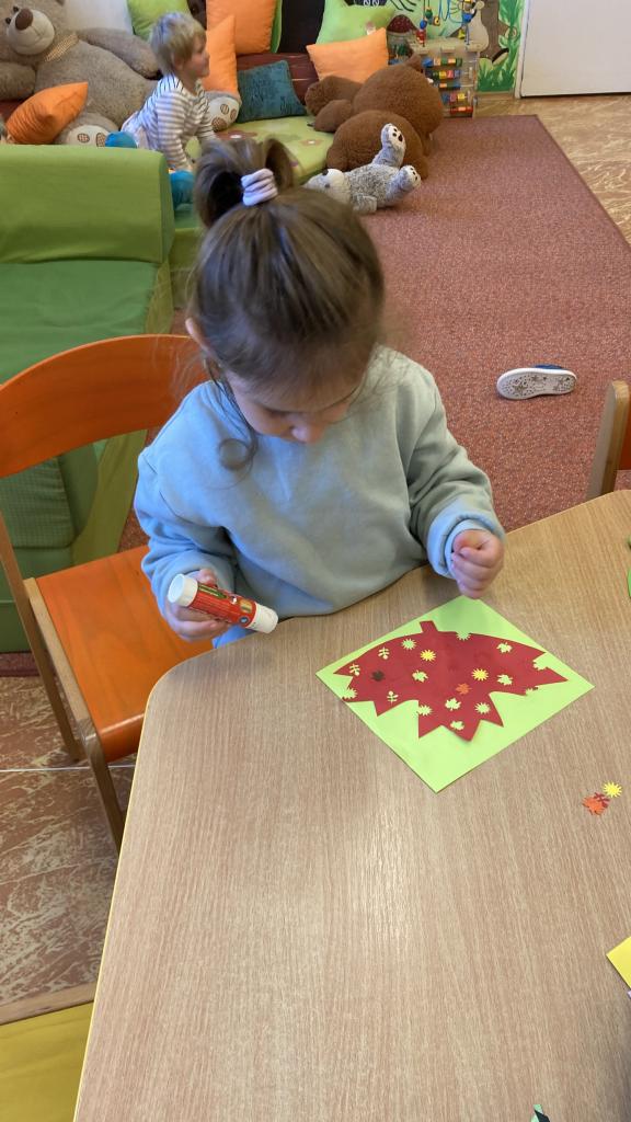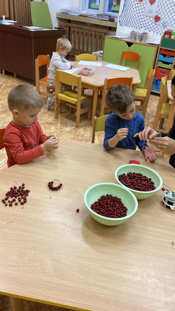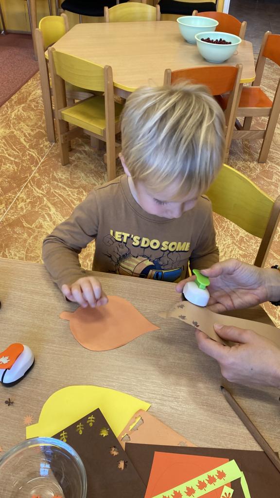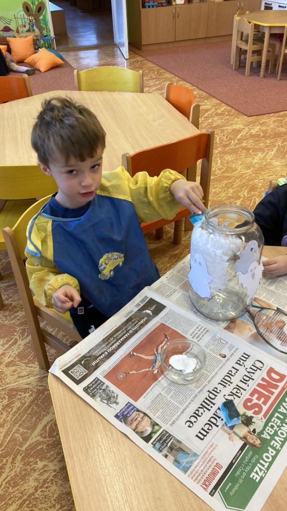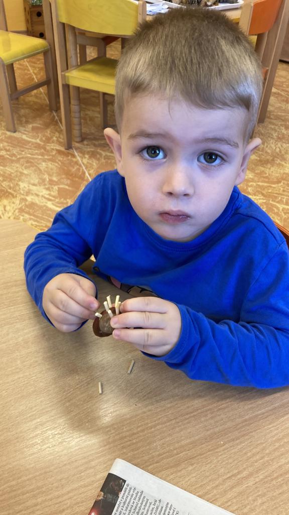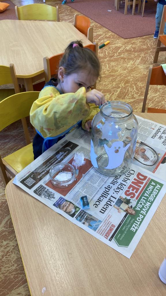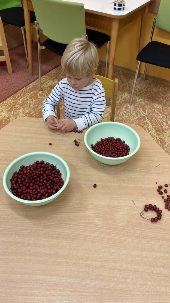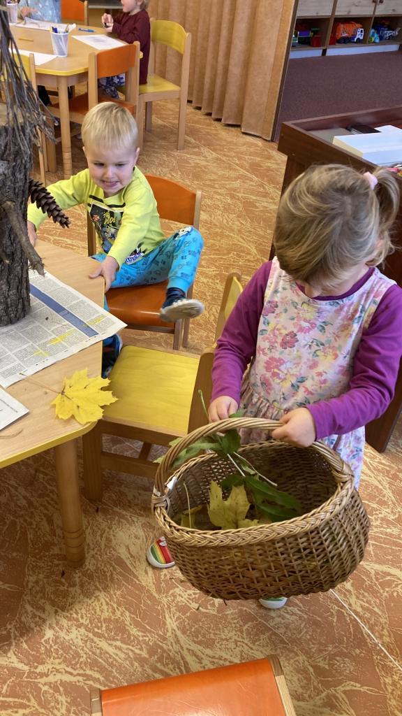 V tento čas děti pozorovaly změny v přírodě - padající listí, plody podzimu, ze kterých i vyráběly a výtvarně je zpracovávaly.