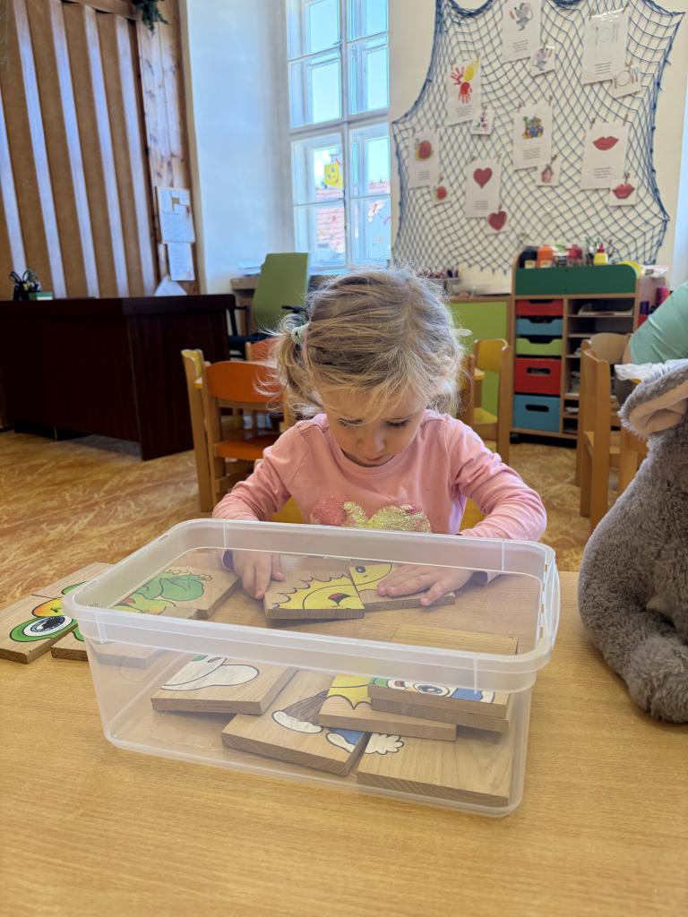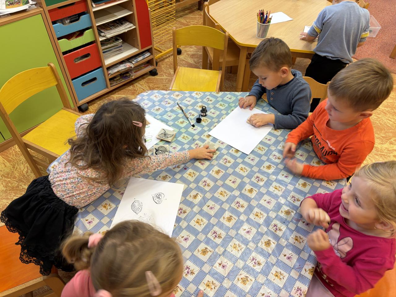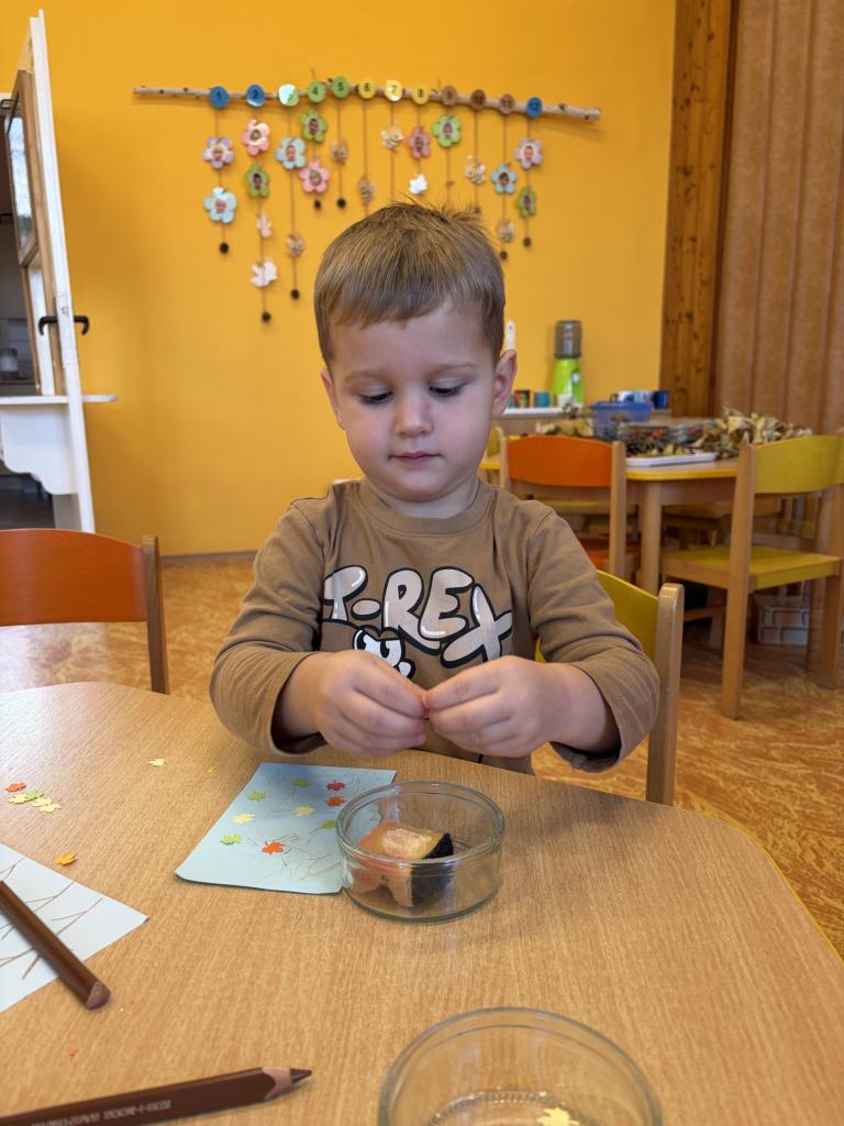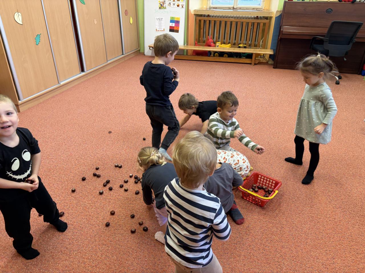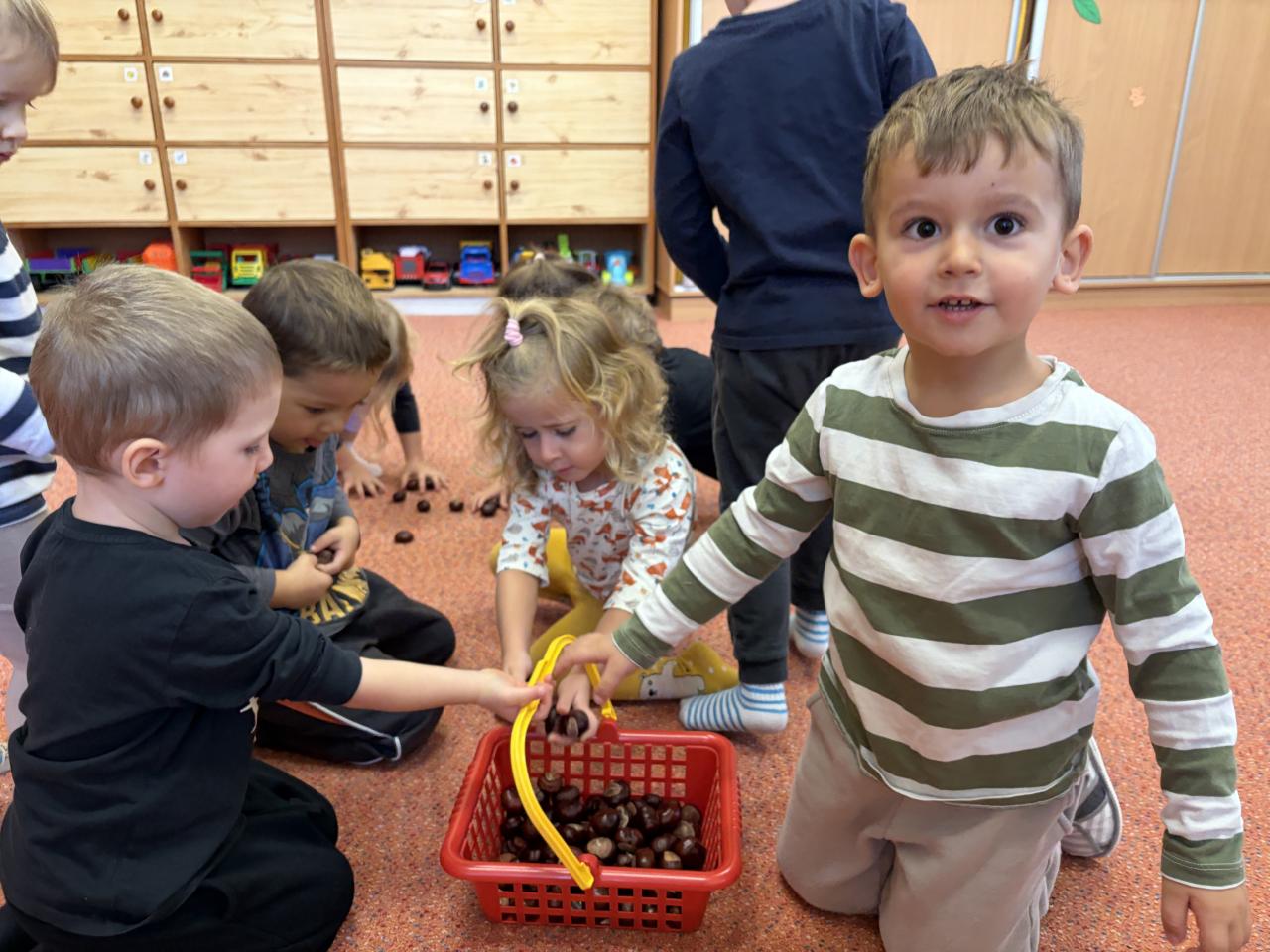 V měsíci říjnu jsme si ve školce užívali krásné podzimní dny plné barev, her a objevování. Povídali jsme si o ovoci a zelenině, hráli si s přírodninami a pozorovali proměny v přírodě. Nechyběly ani chvíle společného tvoření, ranní kruhy a spontánní hry ve třídě i venku.