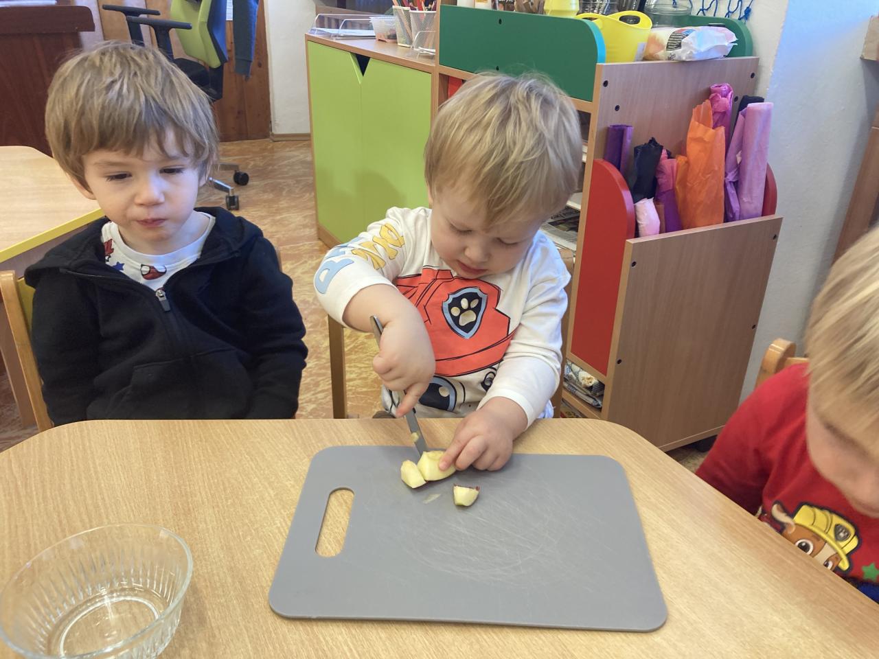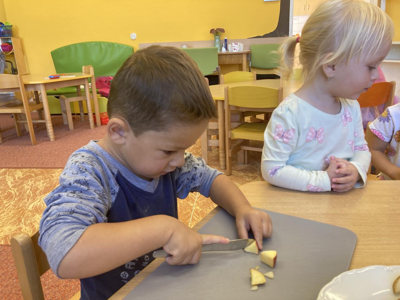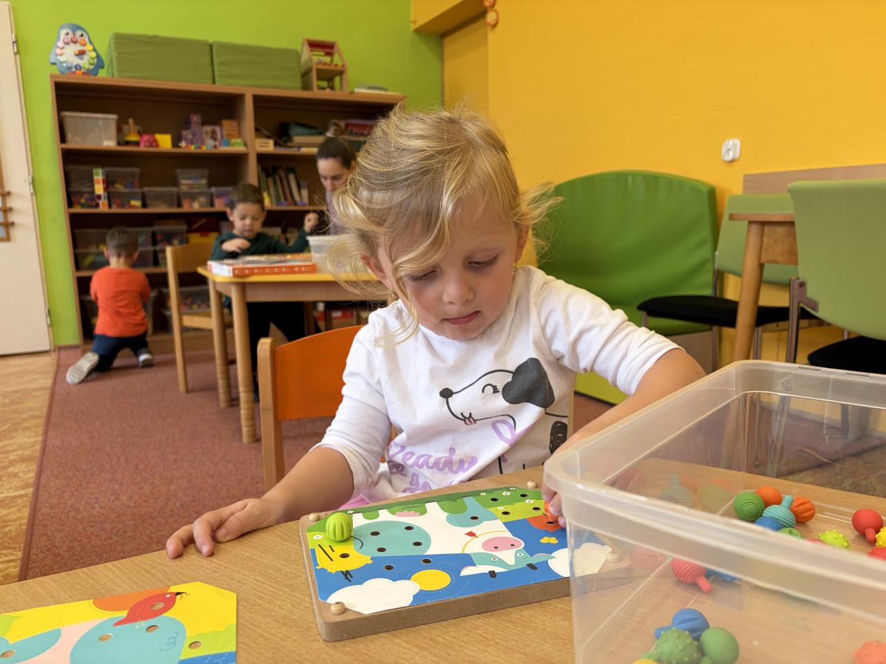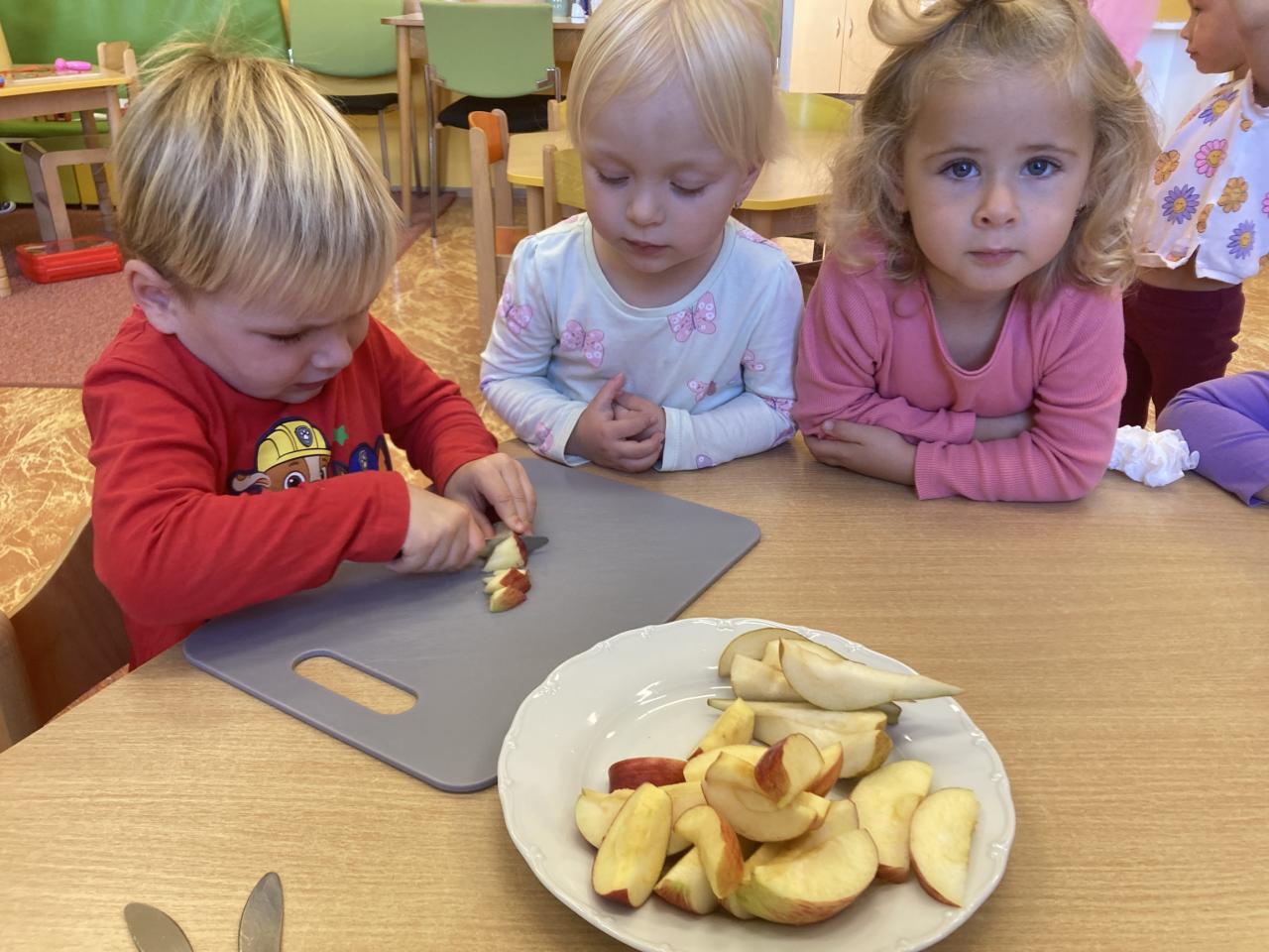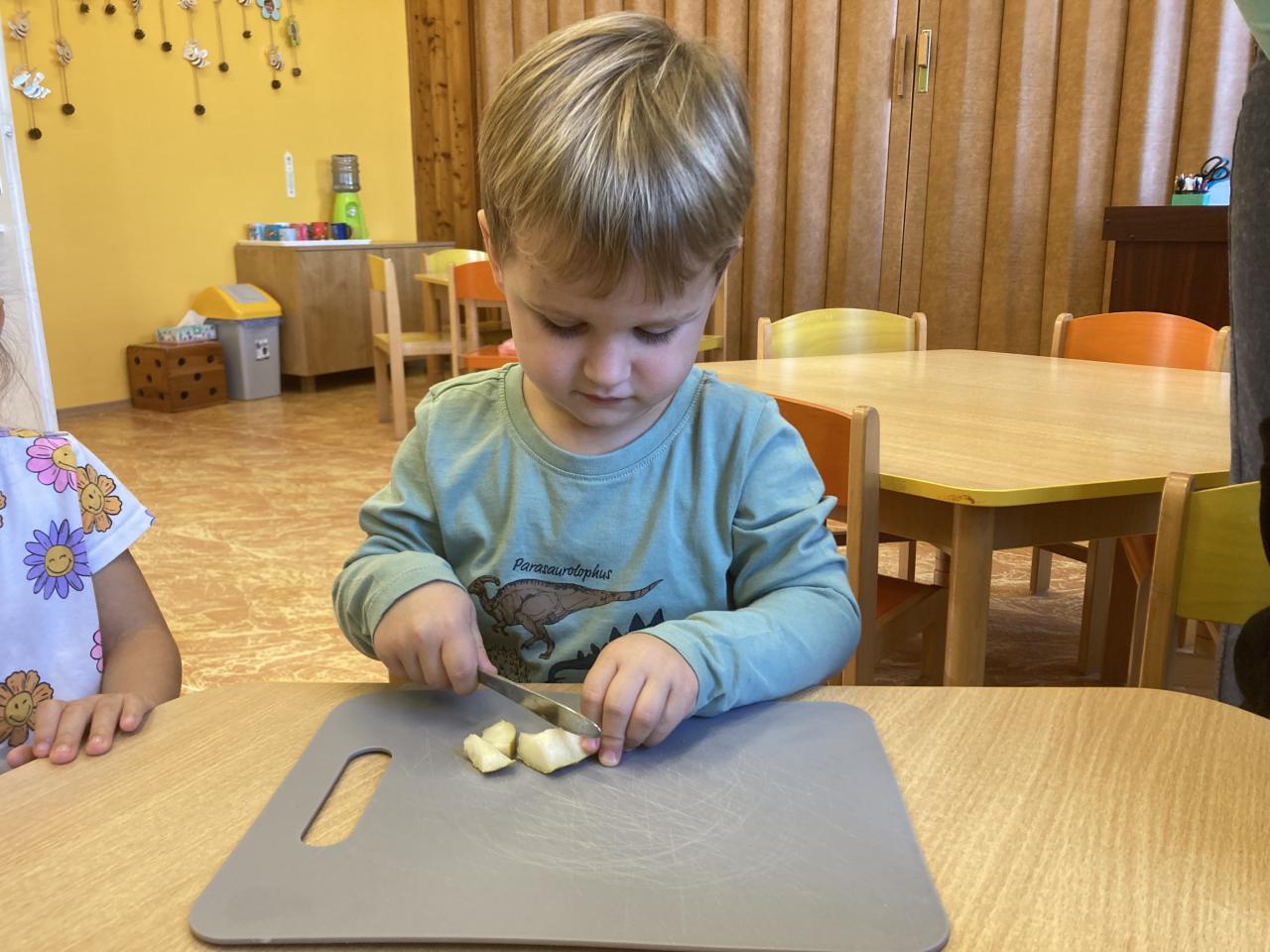 V měsíci říjnu jsme si ve školce užívali krásné podzimní dny plné barev, her a objevování. Povídali jsme si o ovoci a zelenině, hráli si s přírodninami a pozorovali proměny v přírodě. Nechyběly ani chvíle společného tvoření, ranní kruhy a spontánní hry ve třídě i venku.