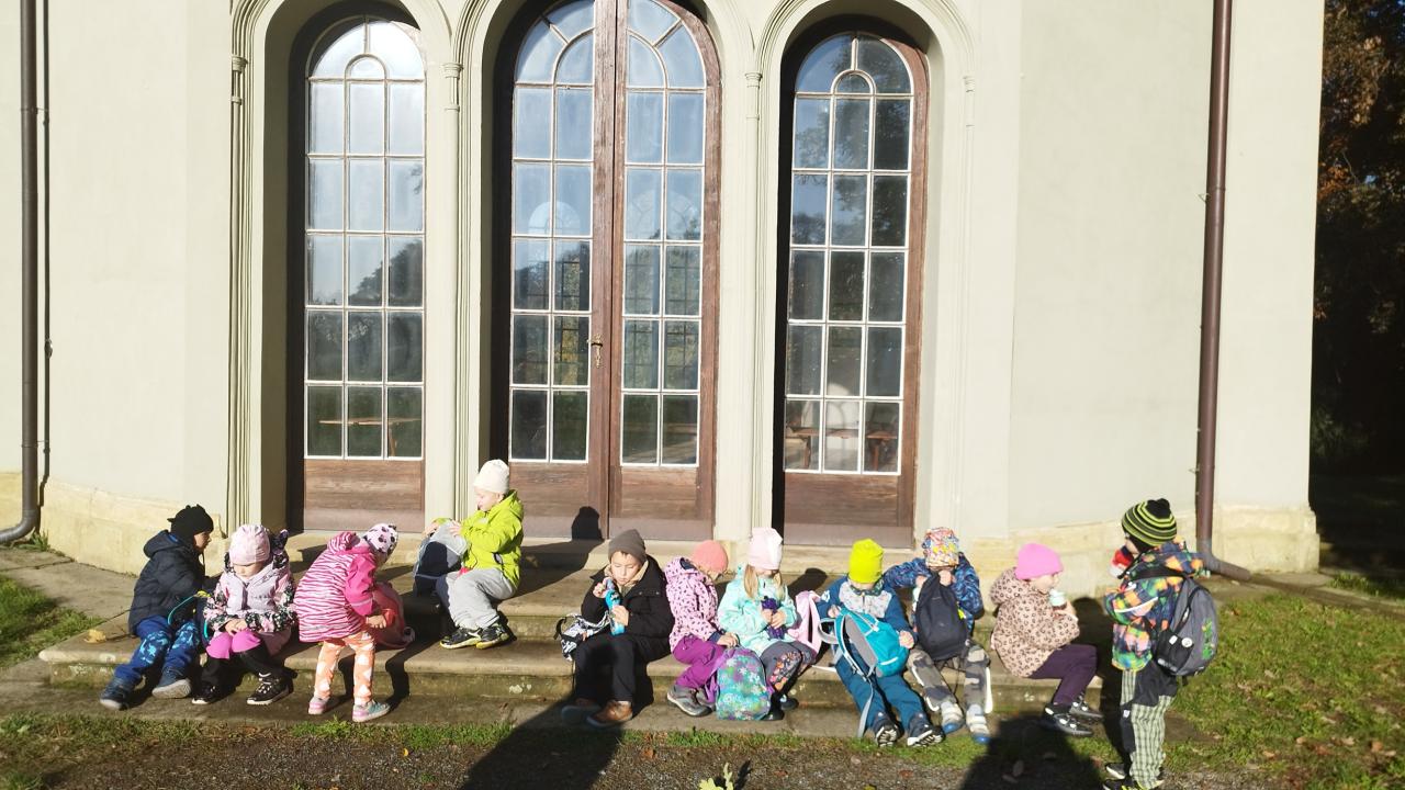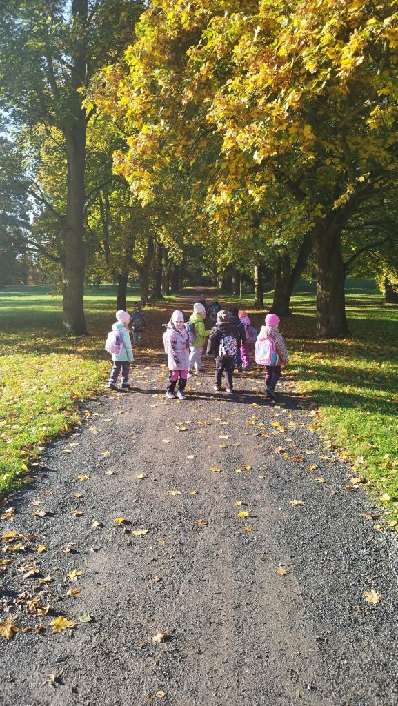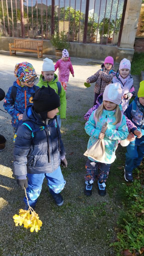 Dne 15.10.2024 navštívily děti zámecký park v Čechách pod Kosířem. V parku sledovaly podzimní proměnu přírody a hledaly ukrytý poklad skřítka Podzimníčka.